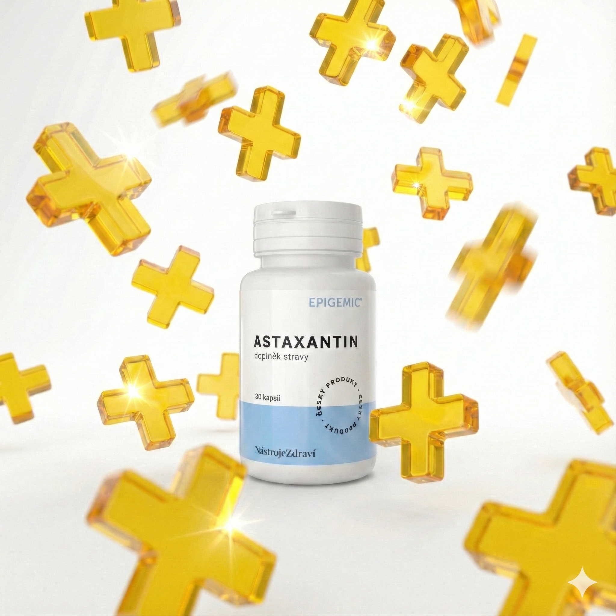 Astaxantin Epigemic® je vyroben z extraktu řasy Haematococcus pluvialis, která obsahuje beta-karoten, lutein, vitamin E a vysoký podíl astaxantinu. Ten je známý jako vzácné barvivo ze skupiny karotenoidů. Protože jsou karotenoidy rozpustné v tucích, je obsah kapsle doplněn o extra panenský olivový olej pro zajištění biologické dostupnosti.
